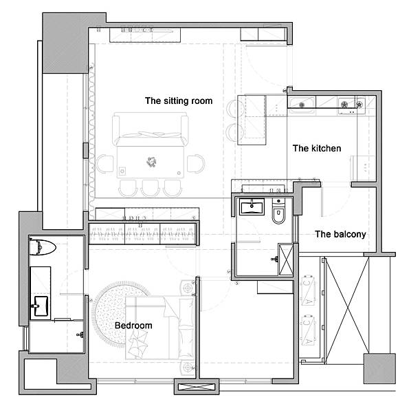 不要求大量收納空間,這是此案與其他空間不大一樣的地方,少量物品也能建立起豐富的生活模式,讓自己真正的達到舒壓狀態。